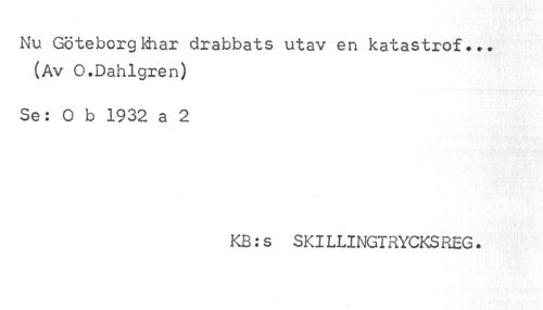 //// Nu Göteborgkhar drabbats utav en katastrof.•• (Av 0.Dahlgren) //// Se: 0 b 1932 a 2 //// KB:s SKILLINGTRYCKSREG. ////