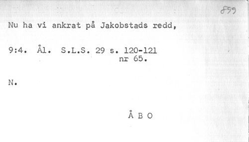 //// Nu ha vi ankrat på Jakobstads redd, //// 9:4. Ål. S.L.S. 29 s. 120-121 //// nr 65. //// N. //// . : i //// ÅBO //// : i ////