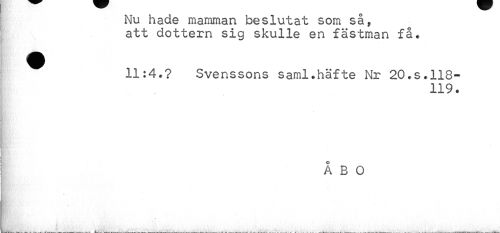 //// ¦VKvM! ' ' //// Nu hade mamman beslutat som så, att dottern sig skulle en fästman få. //// WjBrfL' ' //// 11:4.? Svenssons saml.häfte Nr 20.s.118- //// 119. //// * //// ¦ //// ¦ //// ¦ • //// ÅBO //// - //// 'a'1*¦ ,, 1 i tfrtHå^r^i mii M ////