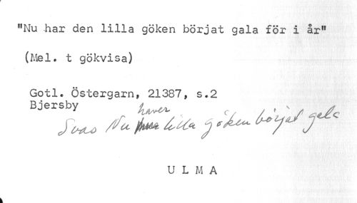 //// "Nu har den lilla göken börjat gala för i år" (Mel. t gökvisa) //// Gotl. Östergarn, 21387, s.2 //// U L M A ////