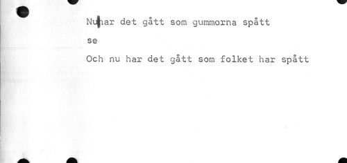 //// Nu|iar det gått som gummorna spått se //// Och nu har det gått som folket har spått //// p V I ////
