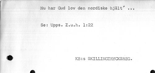 //// Nu har Gud lov den nordiske hjält' Se: Upps. Z.u.h. 1:22 //// ? KB:s SKILLINGTRYCKSREG. //// v ////