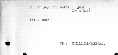 //// I Nu har jag dock äntligt tjänt ut... //// (Av G.Ryd) //// Se: E 1889 k //// ^ KB:s SKILLINGTRYCKSREG. //// * ^ + ////