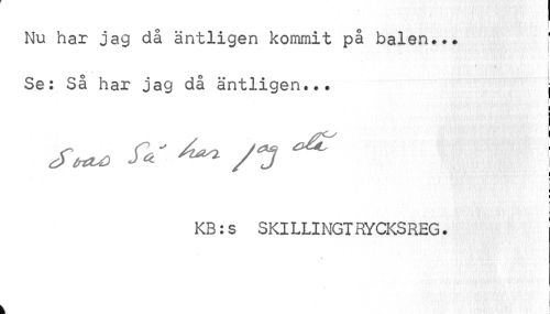 //// I //// I //// Nu har jag då äntligen kommit på balen... //// Se: Så har jag då äntligen... j //// i //// s*u> r* ^ /y ^ i //// 1 //// i //// 1 //// i //// ¦ //// KB: s S Kl LLI NGT RYCKS REG. //// ! //// i ////