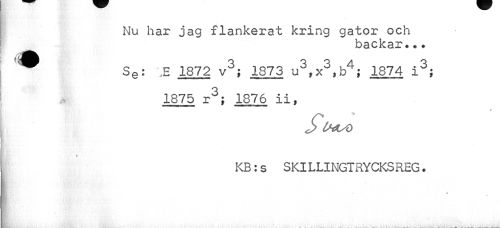 //// Nu har jag flankerat kring gator och //// backar..? //// Se: 1872 v3; 1873 u3,x3,b4; 1874 i3; //// 1875 r3; 1876 ii, //// S tMsd //// % //// KB:s SKILLINGTRYCKSREG. //// % //// * //// K. //// J/Säj&i .V' • > i • \ r, ' V; ; , :(.'.• ,' , ¦ ////