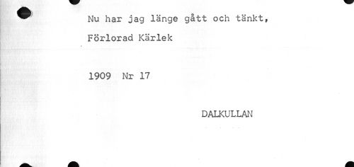 //// M //// Nu har jag länge gått och tänkt, Förlorad Kärlek //// * //// 1909 Nr 17 //// DALKULLAN ////