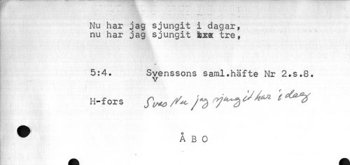 //// c //// Nu har jag sjungit i dagar* nu har jag sjungit tre» //// 5:4. Svenssons saml«häfte Nr 2*s.S. //// v //// H-fors /U. fa ' ^ //// ® ÅBO ////