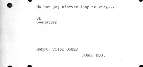 //// Nu har jag slarvat ihop en visa... //// Sk //// Svenstorp //// Mskpt. Visor 35328 //// NORD. MUS. ////
