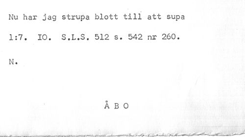 //// Nu har jag strupa blott till att supa 1:7. 10. S.L.S. 512 s. 542 nr 260. //// N. //// ÅBO ////
