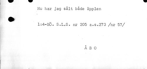 //// Nu har jag sålt både äpplen //// » //// * //// r //// 1:4-BÖ. S.L.S. nr 205 a.s.273 /nr 57 //// /• K //// ÅBO //// 3* ////