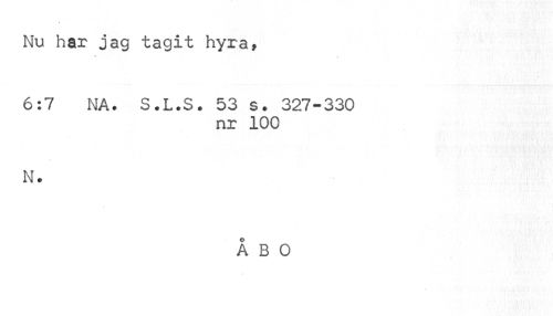 //// Nu har jag tagit hyra» //// 6:7 NA. S.L.S. 53 s. 327-330 //// nr 100 //// N. //// ÅBO //// A ////
