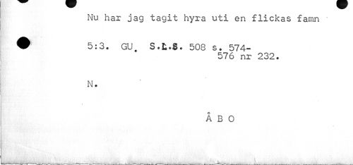 //// Nu har jag tagit hyra uti en flickas famn - //// ® 5:3. GU. S.L.S. 508 s. 574- //// 576 nr 232. //// N. //// ÅBO //// s'l\ »V • / //// /—--—v---v.^lt>*H>----,---___ „_____ ___ ////