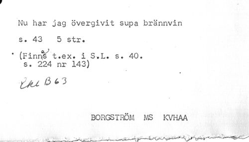 //// Nu har jag övergivit supa brännvin //// s. 43 5 str* //// (Finnj^ t.ex# i S*L. s• 40. s * 224 nr 143) //// * //// BORGSTRÖM MS KVHAA //// i____uii^i •.. :.¦>.- ^iAtuK 1__iiUlUWi-w-i v—iA^A^A/V^^— ////