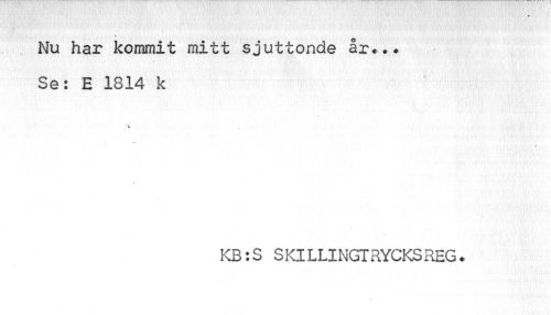 //// \ //// Nu har kommit mitt sjuttonde år... Se: E 1814 k //// v //// ¦ //// t //// KB: S S Kl LLI NGT RYCKS REG. //// ) ////