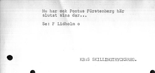 //// Nu har ock Pontus Furstenberg här slutat sina dar... //// Se: F Lidholm o //// ® KB:S SKILLINGTRYCKSREG. ////