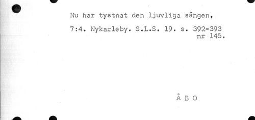 //// Nu har tystnat den ljuvliga sången» //// 7:4. Nykarleby. S.L.S. 19. s. 392-393 //// nr 145. //// # //// ÅBO ////