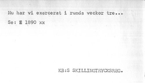 //// Nu har vi exercerat i runcla veckor tre... Se: E 1890 xx //// KB:S SKlLLINGTRYCKSREG. ////