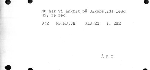 //// Nu har vi ankrat på Jakobstads redd Ri, re reo //// 9:2 NB,MU,JE SLS 22 s. 232 //// o //// A B 0 ////