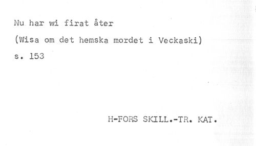 //// Nu har v/i firat åter //// (Wisa om det hemska mordet i Veckaski) //// s« 153 //// H-FORS SKILL.-TR. KAT. ////