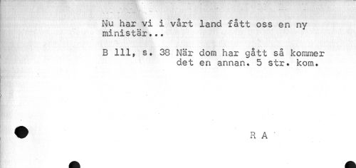 //// . - r //// Nu har vi i vårt land fått oss en ny ministär... //// B 111, s. 38 När dom har gått så kommer //// det en annan. 5 str. kom. ////
