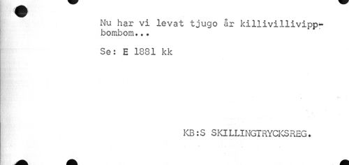 //// Nu har vi levat tjugo år killivillivipp-bombom... //// Se: E 1881 kk //// ¦ //// KB:S SKILLINGTRYCKSREG. ////