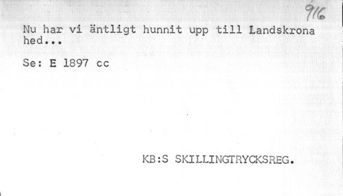 //// Nu har vi äntligt hunnit upp till Landskrona I hed.». //// Se: E 1897 cc //// i ! //// « //// i //// KB:S SKILLINGTRYCKSREG. //// i //// ! ////