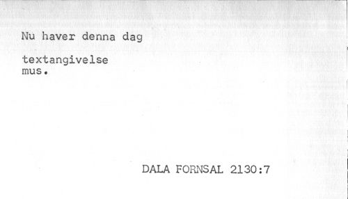 //// Nu haver denna dag //// textangivelse mus« //// DALA FORNSAL 2130:7 ////