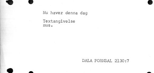 //// Nu haver denna dag //// Textangivelse mus • //// DALA FORNSAL 2130:7 ////