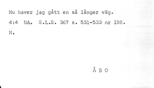 //// Nu haver jag gått en så långer väg. 4:4 NA. S.L.S. 367 s. 531-533 nr 188. N. //// ÅBO ////