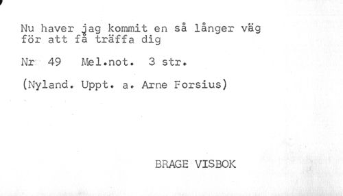 //// Nu haver gag kommit en så långer vag för att fa träffa dig //// Nr 49 Mel.not. 3 str. //// (Nyland. Uppt. a. Arne Forsius) //// BRAGE VISBOK ////