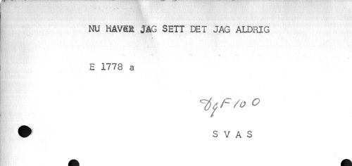 //// - //// NU HÅVgS JAG SETT DET JAG ALDRIG E 1778 a //// HjF/o o ////