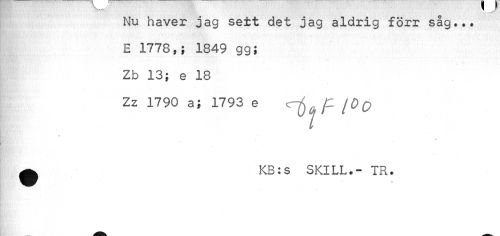 //// :..... //// Nu haver jag sett det jag aldrig förr såg... E 1778,; 1849 gg; Zb 13; e 18 Zz 1790 a; 1793 e //// % //// ^ KB:s SKILL.- TR. ////