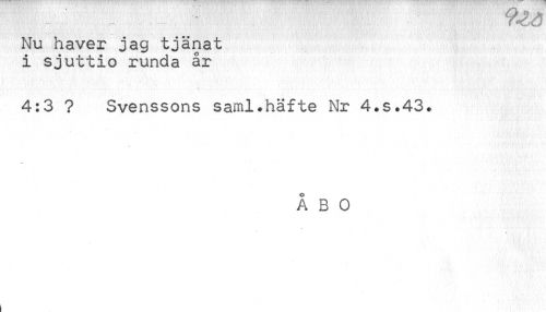 //// f^ww //// Nu haver jag tjänat i sjuttio runda år //// 4:3 ? Svenssons saml.häfte Nr 4#s.43# //// v //// ÅBO ////