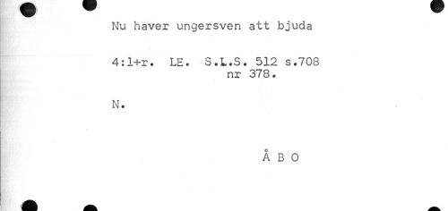 //// Nu haver ungersven att bjuda //// 4:1+r. LE. S.L.S. 512 s.708 //// nr 378. //// « //// N. //// ÅBO ////