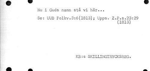 //// Nu i Guds namn stå vi här... //// Se: UUB Folkv.3:6(1813); Upps.-Z.P.s.23:29 //// (1813) //// 1 //// KB: s S KlLLINGTRYCKSREG. ////