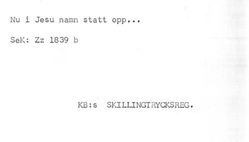 //// Nu i Jesu namn statt opp... //// SeK: Zz 1839 b //// KB:s SKILLINGTRYCKSREG. ////