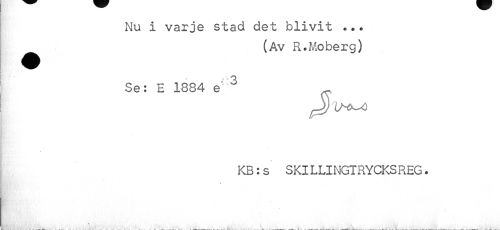 //// Nu i varje stad det blivit «.. //// (Av R.Moberg) //// Se: E 1884 e' 3 //// S) IH^O //// KB: s SKILLINGTRYCKSREG. //// ^ _ _ L V ^ <7 ^ ___ ////