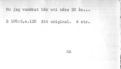 //// Nu jag vandrat här uti nära 20 år... //// i ¦ //// B 105:3,s.125 Ett original. 4 str. //// r | //// t //// RA | //// i ¦ ////