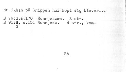 //// Nu J0han på Snippen har köpt sig klaver... //// B 79:2,s.17O Bonnjazzwn. 3 str. i //// B 95 :§ » s.151 Bonnjazz. 4 str., kom. i //// 3 //// i //// i //// | //// t //// I ¦ //// S //// RA ////