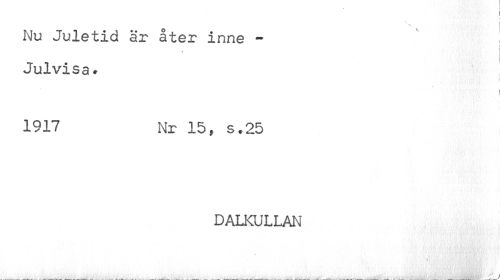//// I //// Nu Juletid är åter inne - //// Julvisa * //// ; //// //// /i //// 1917 Nr 15, s.25 //// DALKULLAN ////