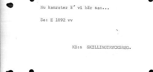 //// Nu kamrater ä' vi här san... //// Se: E 1892 vv //// KB:s SKILLINGTRYCKSREG. ////