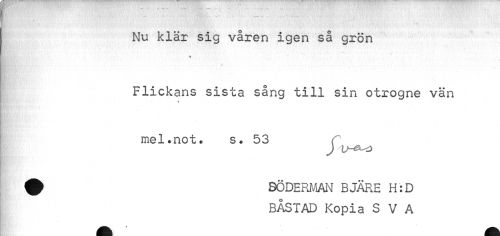 //// ¦ . . - ....... . //// Nu klär sig våren igen så grön //// « //// Hpwitl" //// Flickans sista sång till sin otrogne vän //// i //// mel.not. s. 53 C //// ^ SÖDERMAN BJÄRE H:D //// BÅSTAD Kopia SVA ////