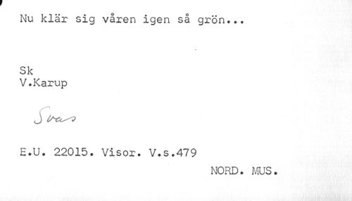 //// Nu klär sig våren igen så grön... Sk //// V.Karup //// J IfXc^l //// E.U. 22015. Visor. V.s.479 //// NORD. MUS. ////