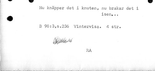 //// Nu knäpper det i knuten, nu brakar det i //// isen*.. //// N //// B 98:3,5.236 Vintervisa. 4 str. //// RA //// [•¦ ?.• -'tw, ' ' . ii »':••/;•. ' • >i\ .'¦¦ J; V ¦ v<: ¦¦:/ • > • '» ¦¦ . 1 . ... • , v //// I //// ____. . X ____... ___-^.v ---k___— -------— ---- ^ —--—• —----- - ----- ////