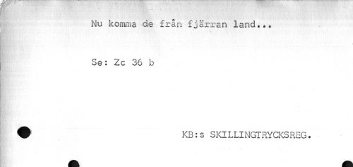 //// Nu komma de från fjärran land.,* //// * //// Se: Zc 36 b //// ? KB:s SKILLINGTRYCKSREG. //// * -- — „ _ ////