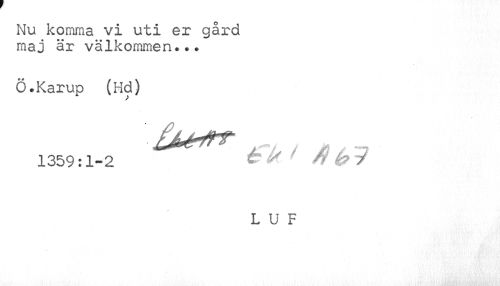 //// Nu komma vi uti er gård maj är välkommen... //// Ö.Karup (Hd) //// 1359:1-2 C*" *t //// L U F ////
