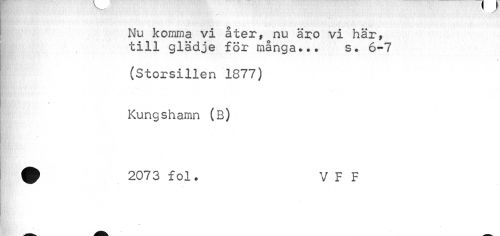 //// ----\ Jy //// Nu komma vi åter,^nu äro vi här, till glädje för många..• s. 6-7 //// (Storsillen 1877) //// Kungshamn (B) //// •2073 fol. V F F //// # //// —- ////