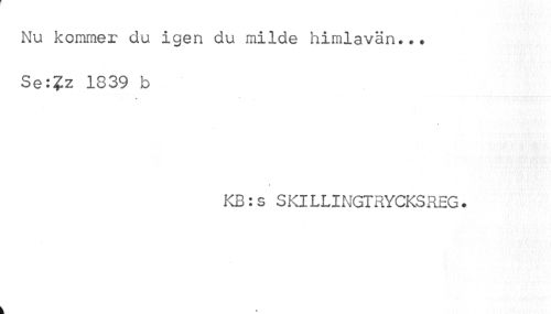 //// Nu kommer du igen du milde himlavän... //// Se:?z 1839 b //// KB:s SKILLINGTRYCKSREG. ////