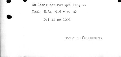 //// Nu lider det mot qvällen, — Maal. E.A:n 6.4 - v. m? //// ® Del II nr 1091 //// j,] c ': //// \ //// rancken förteckning ////