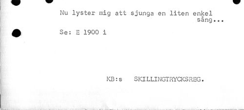 //// Nu lyster mig att sjunga en liten enkel //// sång?.» //// 0 Se: E 1900 i //// i r //// KB:s SKlLL1NGTRYCKSREG. ////